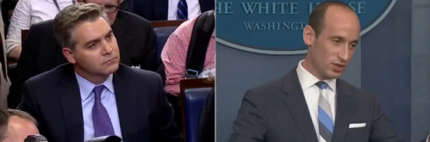 (2017 年,Miller 与 CNN 记者就美国移民问题进行了辩论,来源:视频截图)