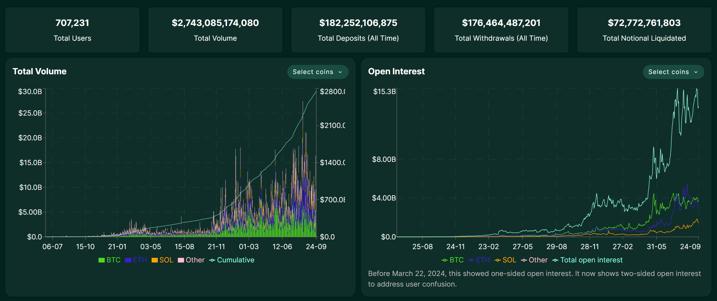 也正是在这样的背景下,Hyperliquid 的出现为整个赛道带来新的变量,少为人知的是,虽然 Hyperliquid 是今年才正式出圈并进入很多用户的视野,但他其实早在 2023 年就已推出,并在过去两年中持续迭代和积累。#p#分页标题#e#